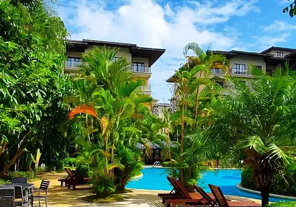 园区环境:这里绿化环境庞大优美,绿树成荫、阳光和煦、空气清新、水清沙幼、青翠的椰林,再就是银色沙滩,海边怪石嶙峋,海水清澈见底以及各种丰富多彩的休闲娱乐设施等。 |