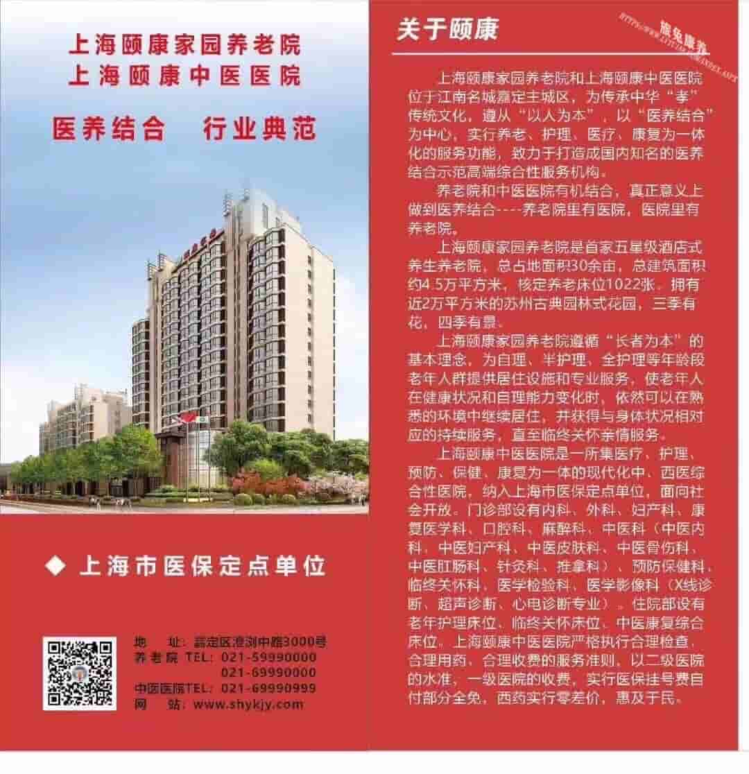 上海颐康家园养老院位于嘉定新城主城区,由民政部门批准设置,是以老年服务为核心的产业集团,旗下颐康养老院、颐康福利事业服务中心、老年文艺社,以开展老年休闲度假、生活照料、文化娱乐;及养老人才、技术交流等,促进社会养老服务水平提高为目的的公益性服务机构。