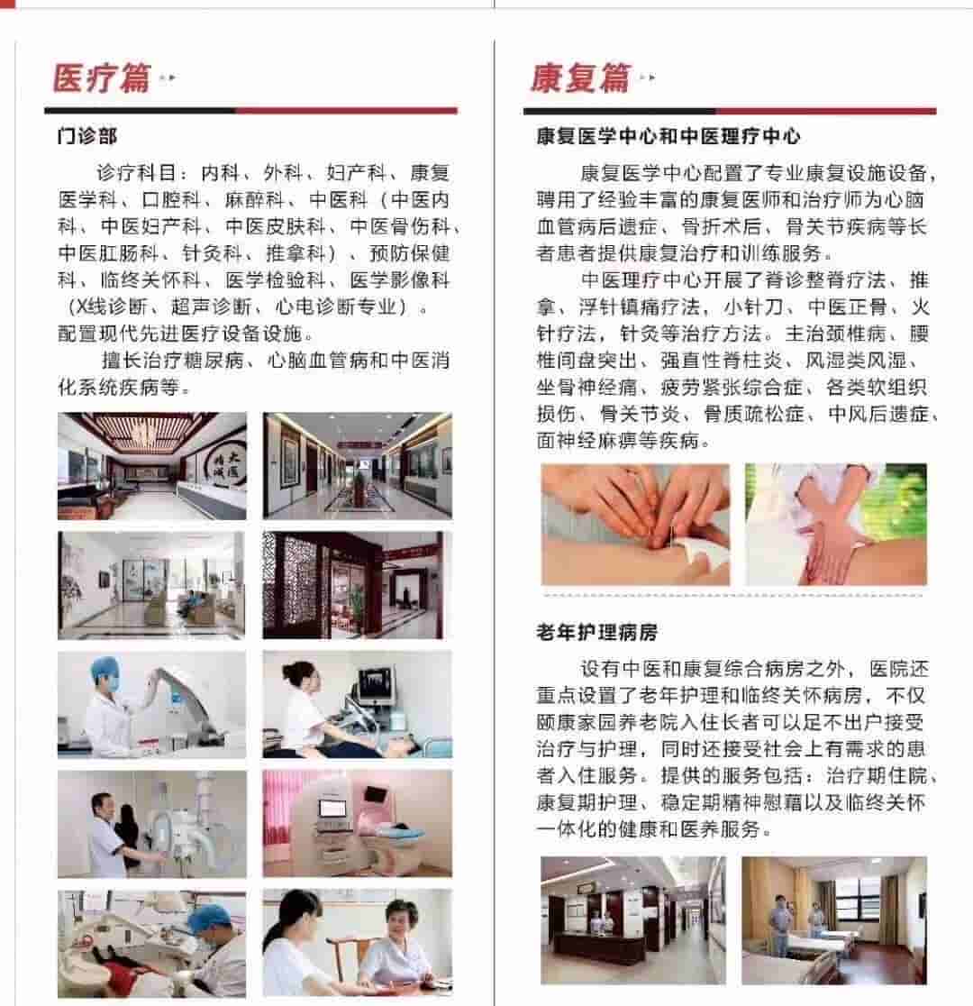 根据长者常见疾病,我院将购置心电图仪、康复等基本设备,由常年驻院的医生、护师、护士,为长者提供24小时预防保健、医疗观察等服务。此外,针对一些老年常患专科疾病,我院积极整合社会专业资源,特邀市、区级各大医院专家医生来院定期轮班坐诊,并与本区各医院建立“绿色通道”,同时,我院成立一支“陪护就医”服务队伍,多方位、多网络组成一支强大的医疗服务队伍,第一时间为长者的就诊、转诊、急诊提供快速保障。
